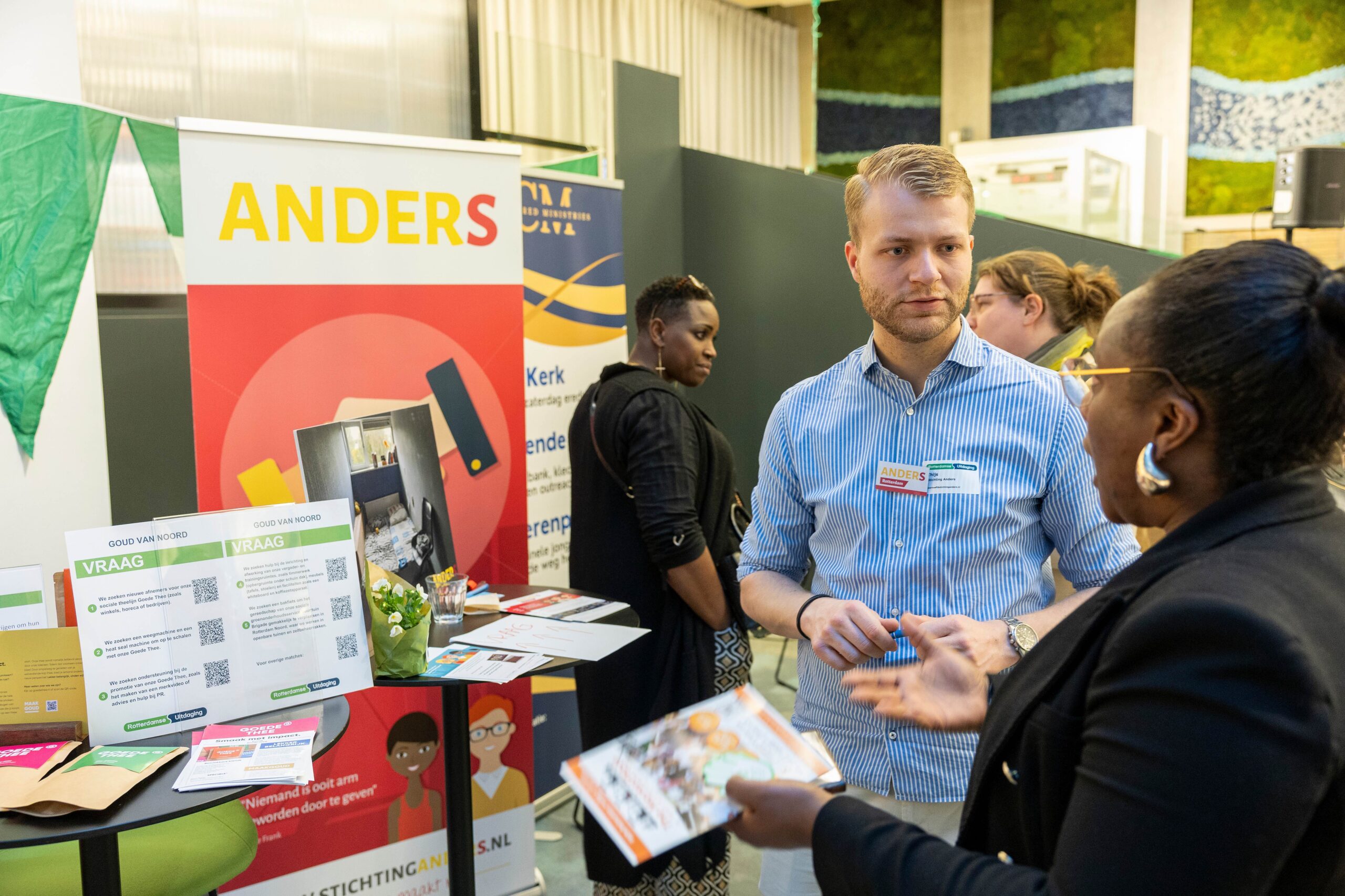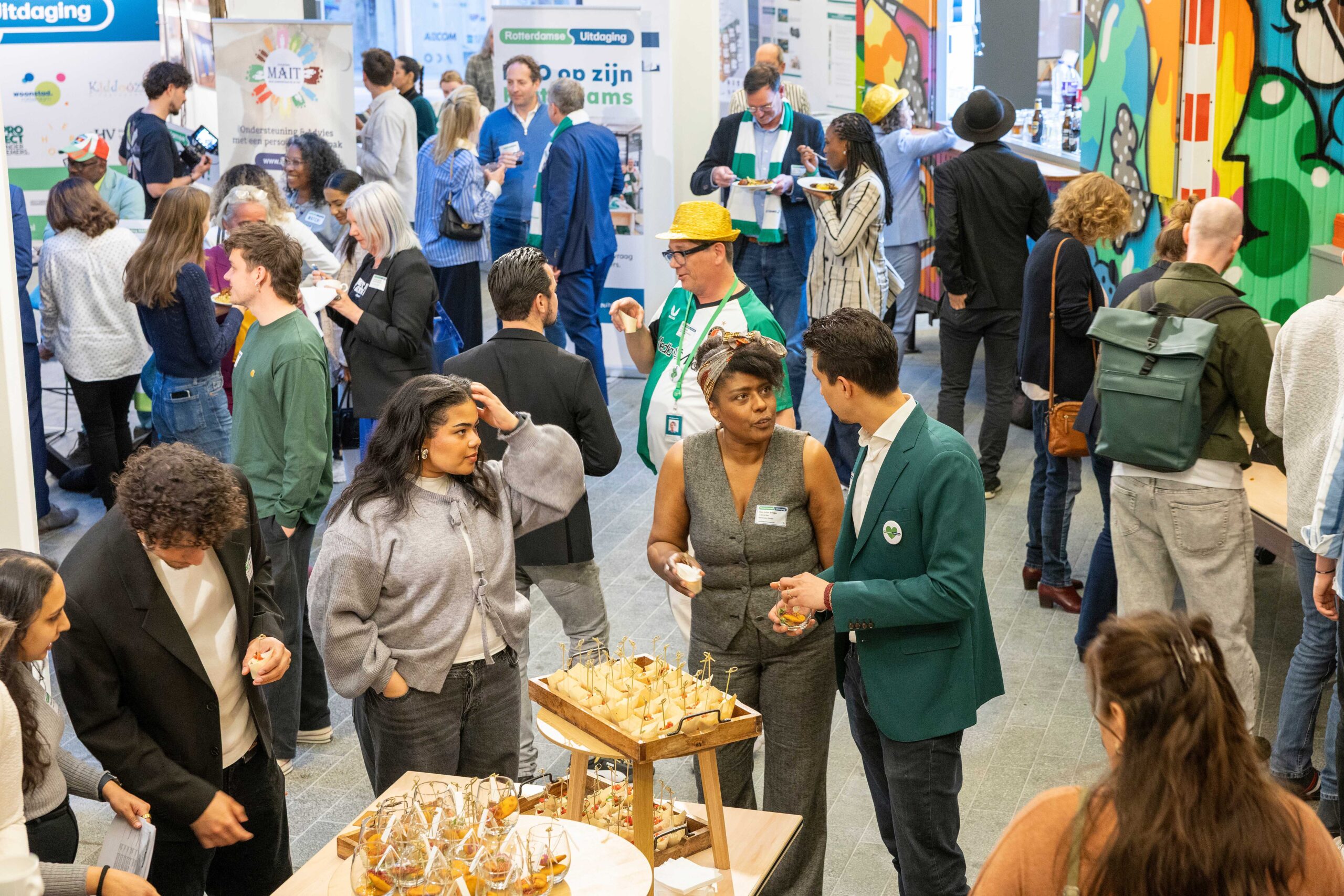 Kom dan 1 april 2025 naar het matchmaking event van de Rotterdamse Uitdaging. Op dit evenement presenteren maatschappelijke organisaties hun vragen. Of het nu gaat om producten, ondersteuning van vrijwilligers, advies of fysieke hulp, zij zoeken een bedrijf om hun uitdaging in te vullen. Als ondernemer kan je op zoek gaan naar de perfecte match voor je bedrijf. Kom en ontdek hoe jouw bedrijf een verschil kan maken in Rotterdam en geef invulling aan je MVO (maatschappelijk verantwoord ondernemen) .